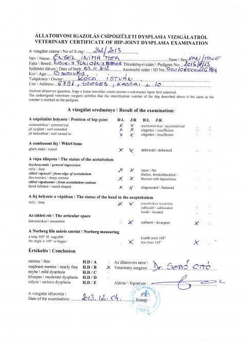 EuW `04, Res.EuW `07, J.EuW `03, Int.Ch, Club.Ch, ... ОКД - 1, ЗКС - 1 Nikola Gorynich s Zolotogo Grada [P] РКФ 1255057, HD-A, ED-0 Золотова С. |